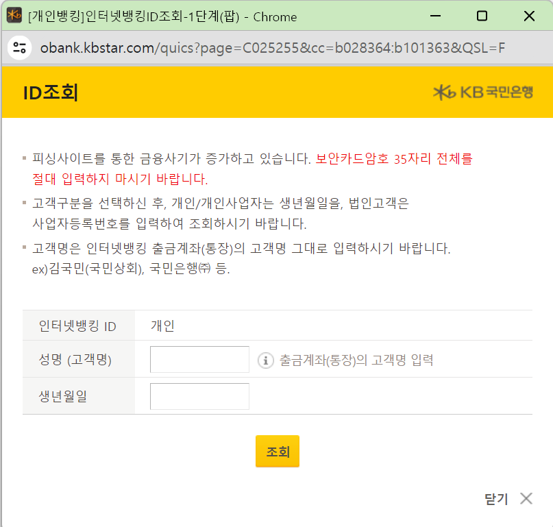 1. 국민은행 홈페이지 접속