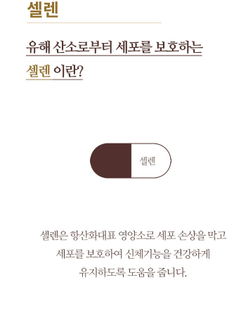 들어있는 원료 중 셀렌은 세포를 유해산소로부터 보호를 하여 항산화작용을 하는데 도움을 줍니다.