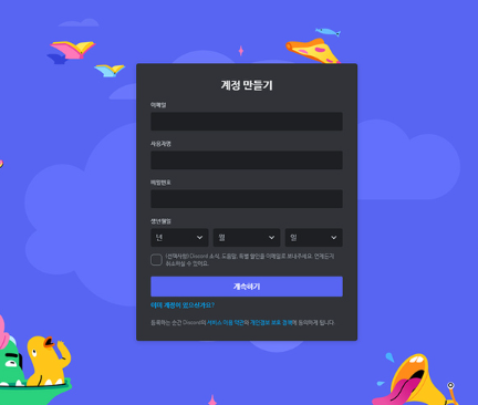 - 디스코드 앱이 실행되면 기존 계정으로 로그인하거나 새 계정 만들기 옵션을 선택하여 가입할 수 있습니다.