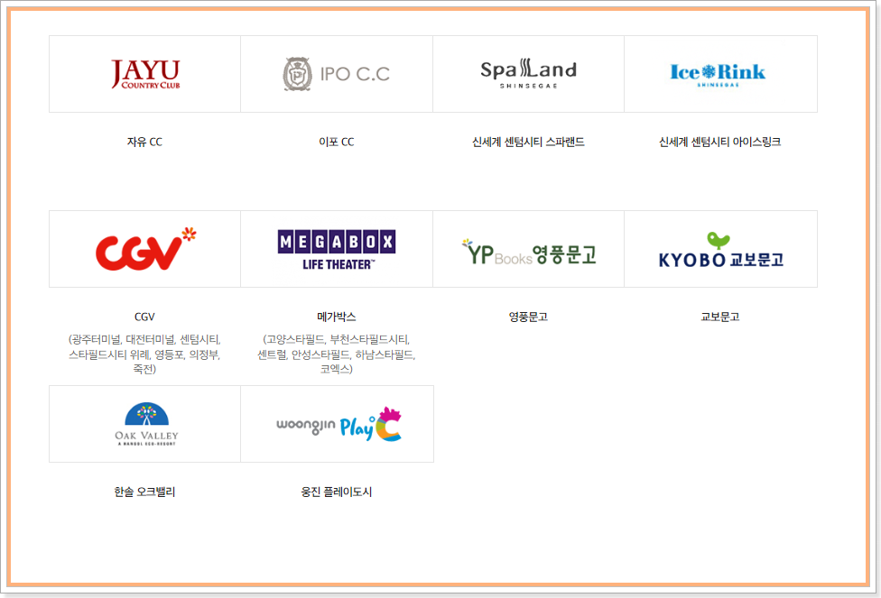 신세계상품권 사용처 4. 레저 / 문화 신세계상품권 사용처