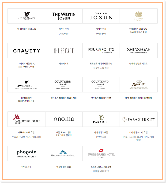 신세계상품권 사용처 3. 호텔관련 신세계상품권 사용처