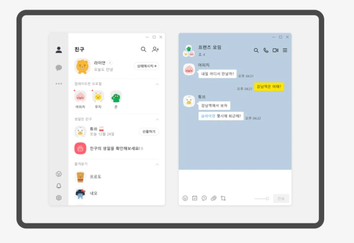 카카오톡 PC버전 위에서 언급드린 대로 장점이 많은데요. 작업 효율성이 높아지고, 여러 추가 기능과 채팅창을 여러 개 열어서 사용할 수 있어서 편리합니다.