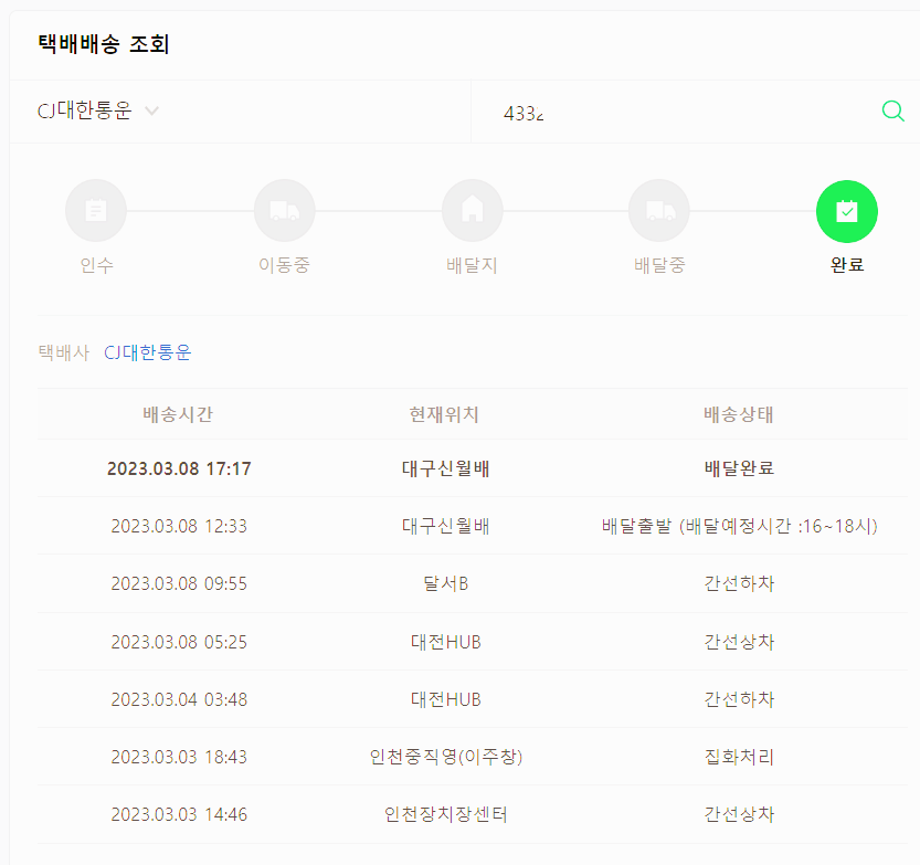 아래와 같이 조회현상을 보실 수 있습니다. 정확한 날짜와 시간이 표시되어 있어서 알기 쉽게 정보를 받아보실 수 있습니다.