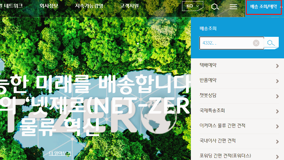 아래와 같이 운송장번호를 입력하시면 됩니다.